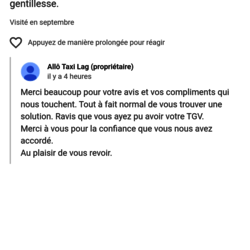 Solidement implantée dans le Val de Saône, la SARL Allô Taxi Lag est à votre disposition pour trouver une solution à vos problèmes de transports, ainsi qu'en France et à l'étranger.
